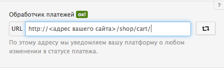 10. В личном кабинете Unitpay.ru введите адрес обработчика платежей http://<адрес вашего сайта>/shop/cart/