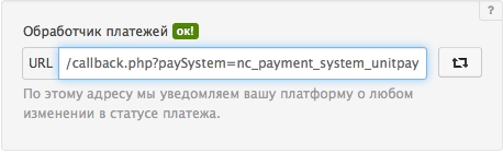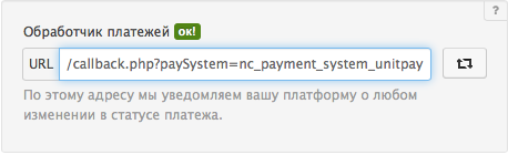 7. В личном кабинете Unitpay.ru введите адрес обработчика платежей http://<адрес вашего сайта>/netcat/modules/payment/callback.php?paySystem=nc_payment_system_unitpay