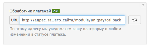 9. Зайдите на страницу проекта в личном кабинете Unitpay и пропишите обработчик платежей по шаблону http://адрес_вашего_сайта/module/unitpay/callback