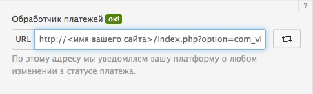 7. Введите в личном кабинете Unitpay.ru обработчик платежей по шаблону http://<имя вашего сайта>/index.php?option=com_virtuemart&view=pluginresponse&task=pluginnotification&tmpl=component&format=json