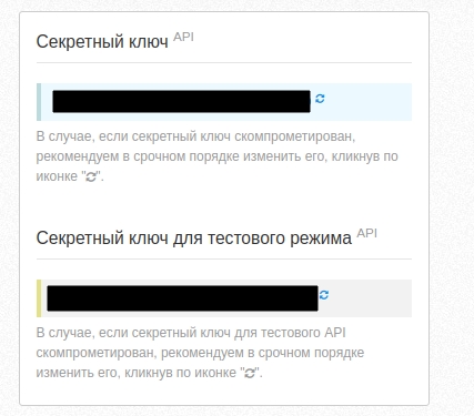 ВАЖНО! После перехода в "боевой" режим не забудьте поменять тестовые параметры на реальные и заменить секретный ключ для тестового режима на настоящий в API.