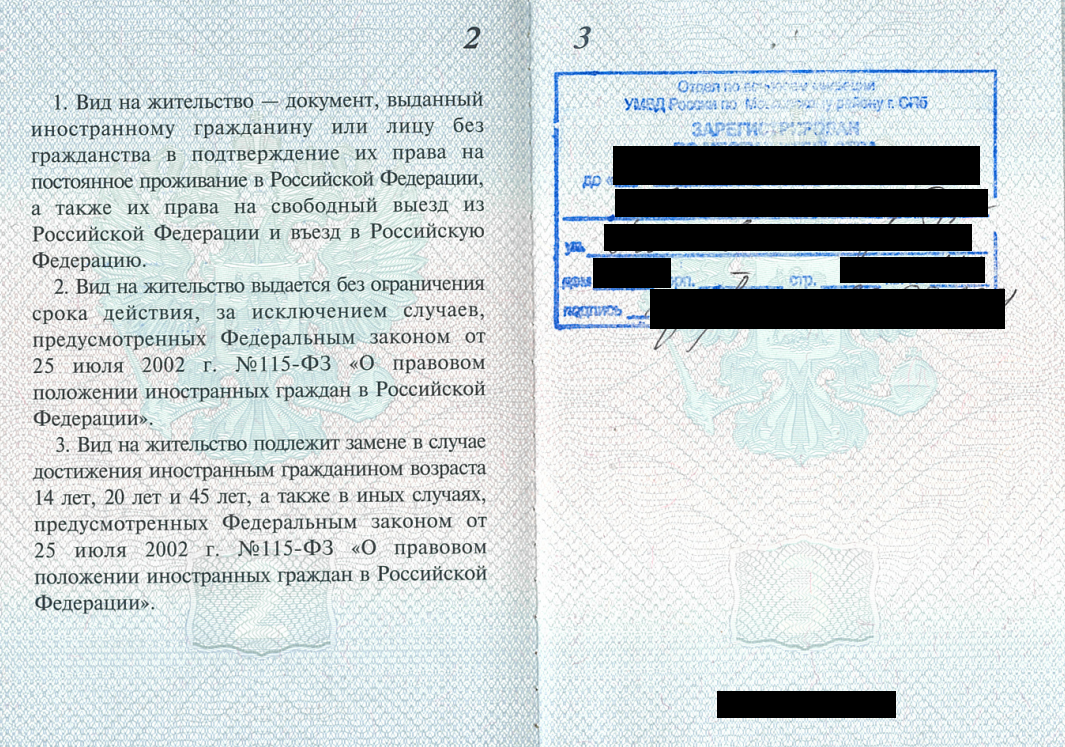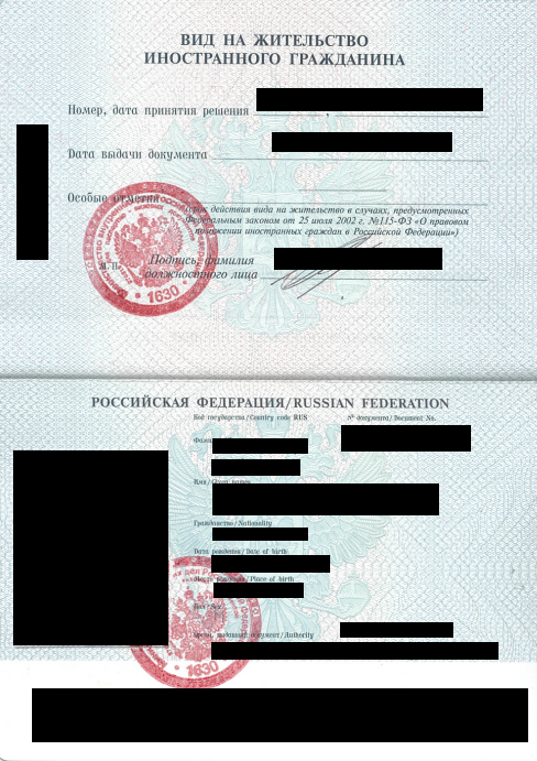 <figure><img src="https://552539910-files.gitbook.io/~/files/v0/b/gitbook-x-prod.appspot.com/o/spaces%2F-M9Y_k8Gr-WxeECFRelw-1508421016%2Fuploads%2F3JIgyff7GmFXEGmtTMhe%2F%D0%92%D0%9D%D0%96-1.png?alt=media&#x26;token=c149b04d-7cd0-49d5-82f1-260a6991f0a3" alt=""><figcaption><p>Первый разворот вида на жительство (пример)</p></figcaption></figure>